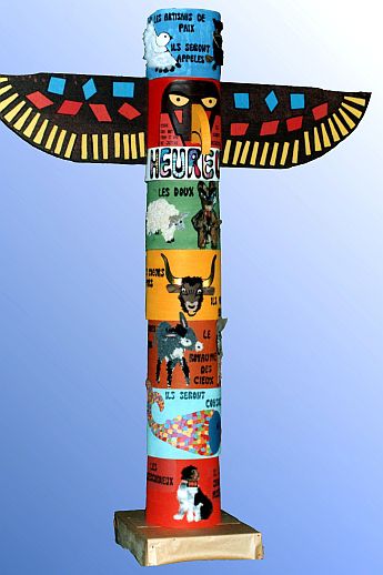 Les enfants du caté ont découvert les sept clefs du bonheur apportées par Jésus, du vrai bonheur dans la vie de tous les jours, même quand les larmes coulent, et ceci avec l'aide de divers textes bibliques et les animaux qui figurent sur le totem.